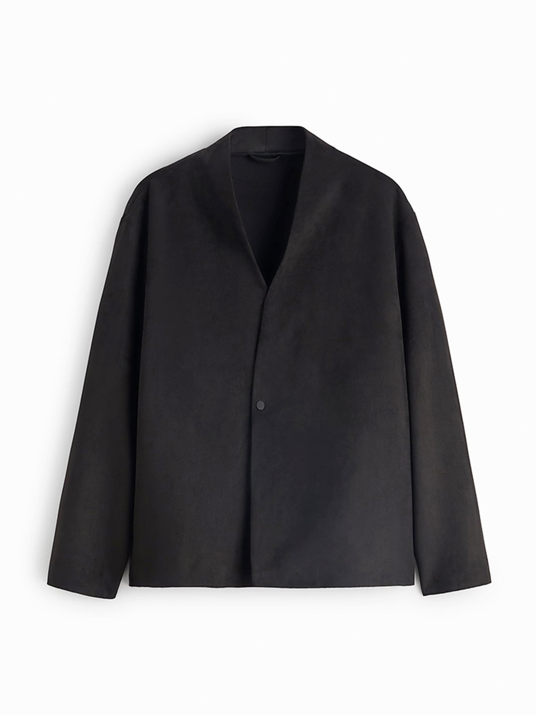 Men’s 1 Button Collarless Suede Blazer Suit