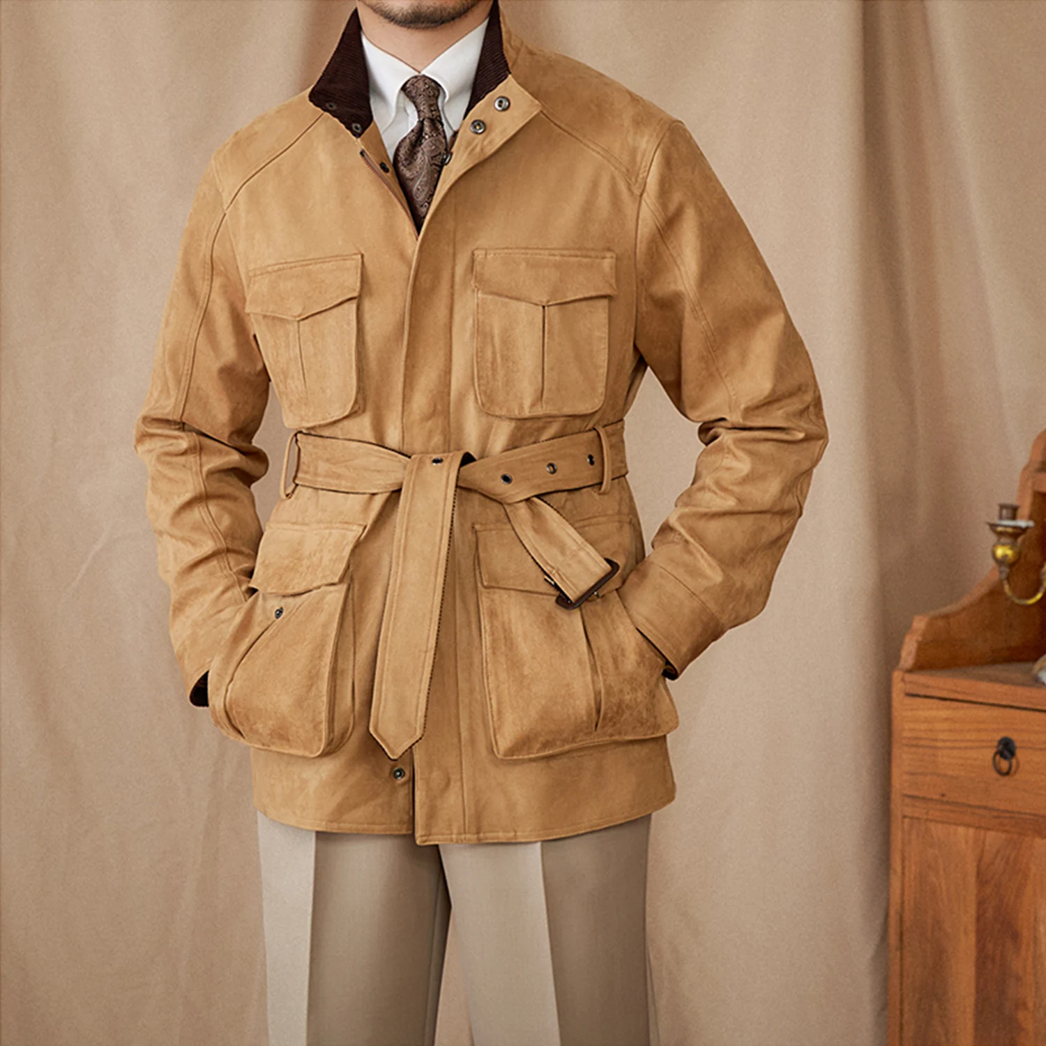 Men’s Pockets Hunting Faux Suede Jacket
