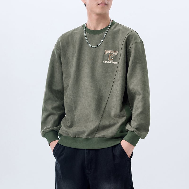 Men’s Premium Suede Sweatshirt Streetwear Relaxed Top