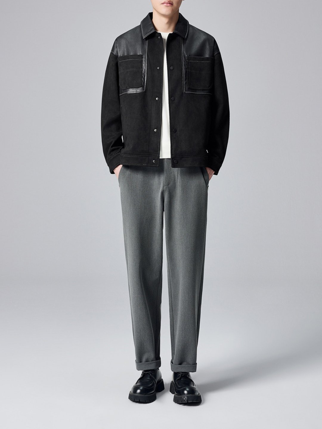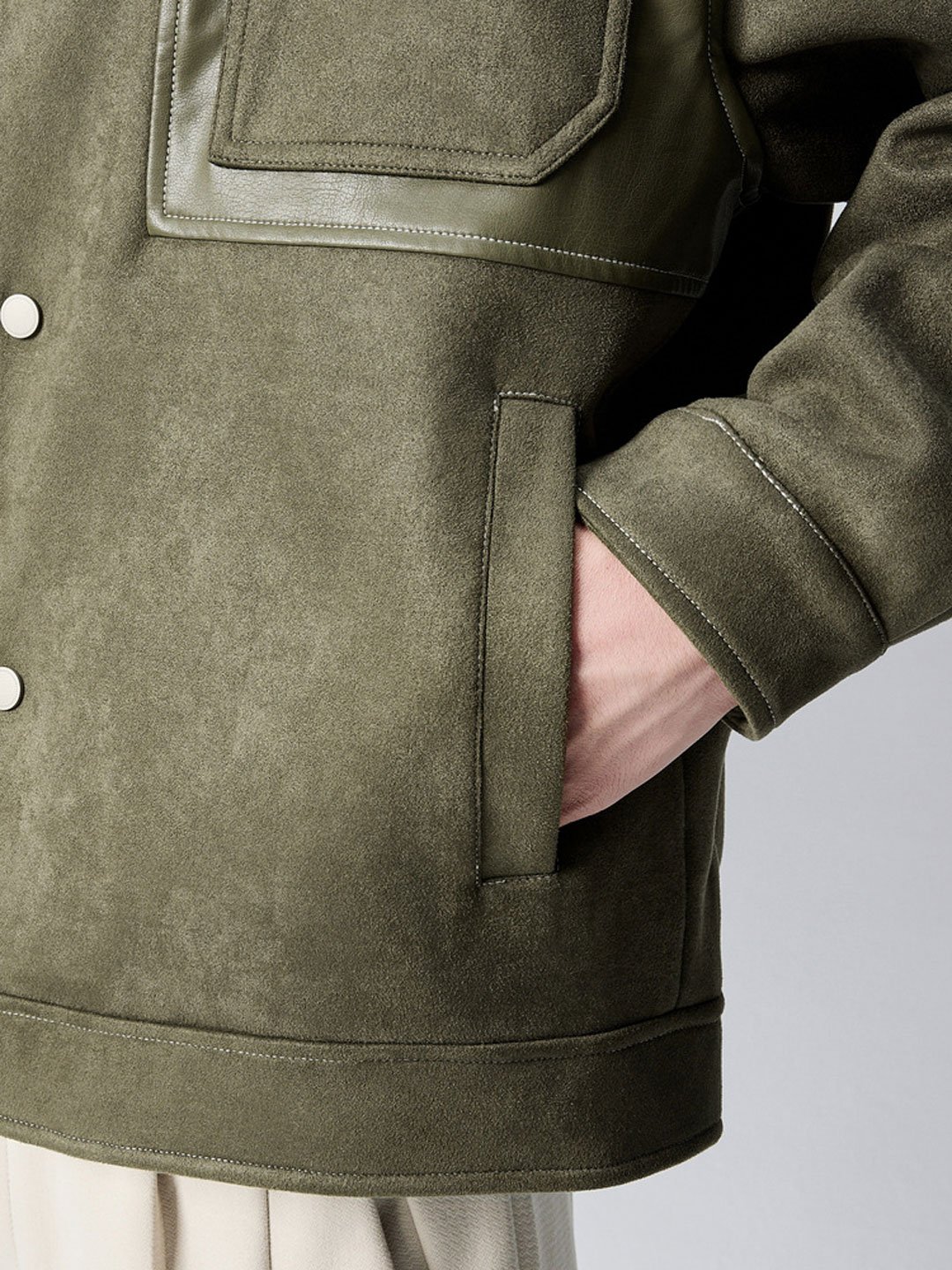 Men’s PU Splice Faux Suede Jacket